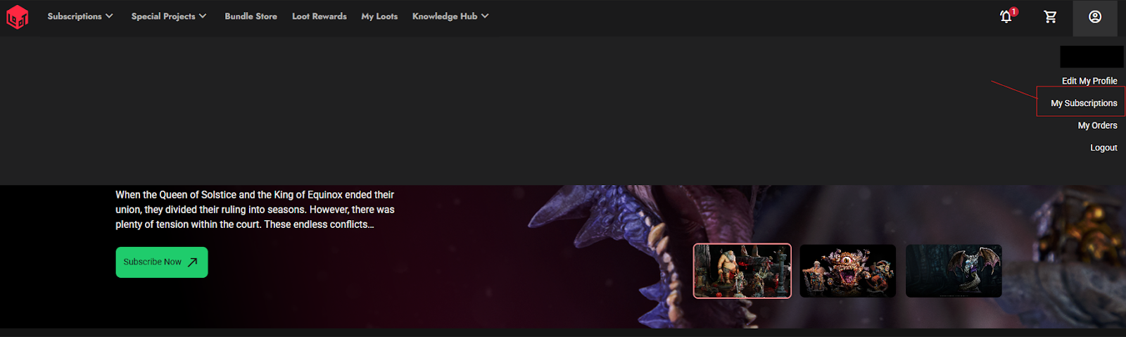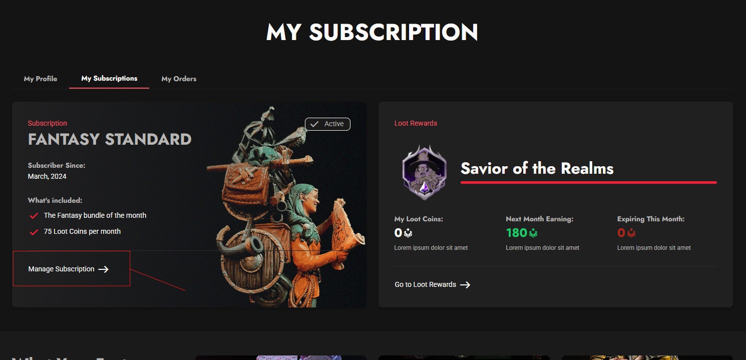 - Acesse a página "My Subscription" no seu perfil, disponível no canto superior direito do nosso App: